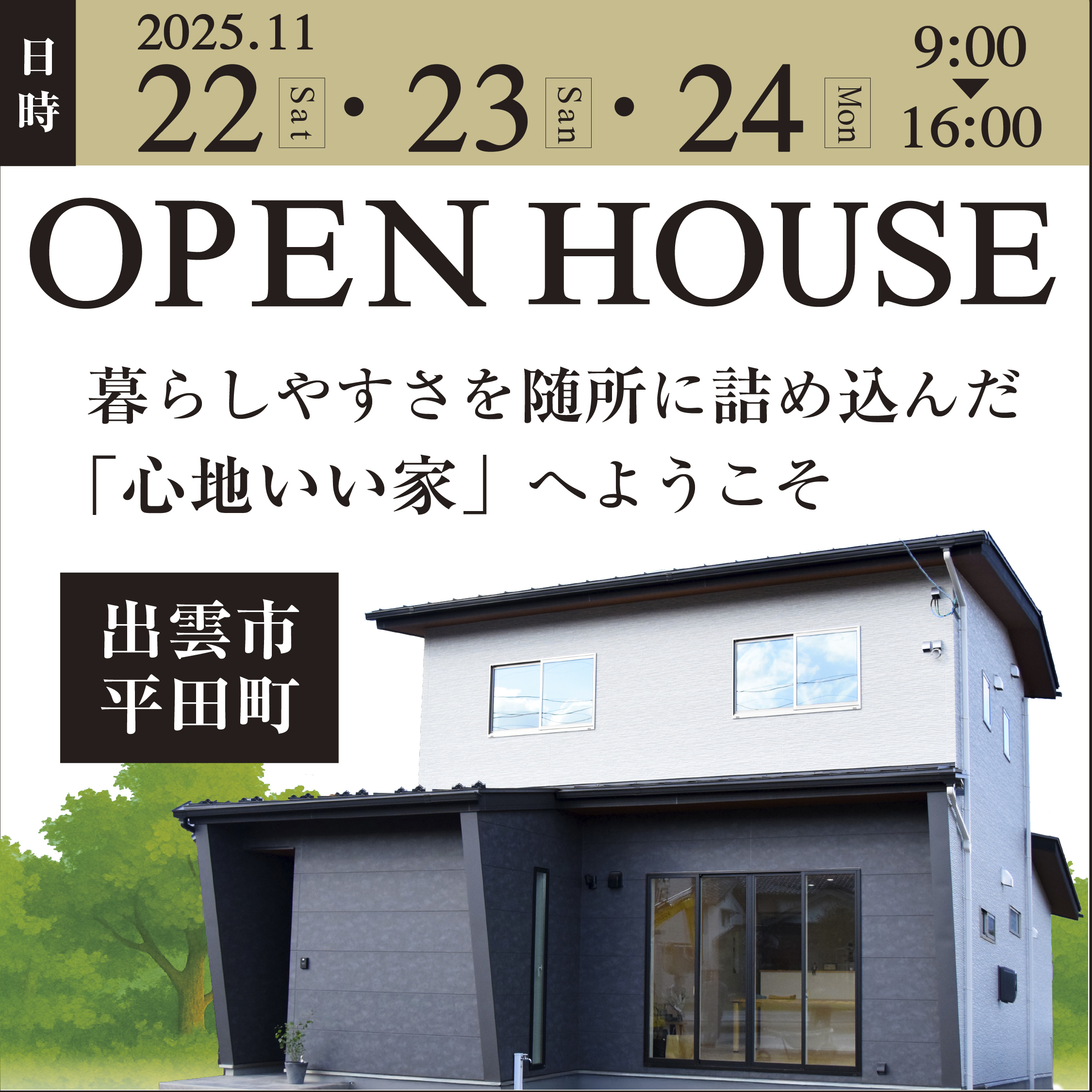 【出雲市平田町】完成見学会開催 11/22(土)・23(日)・24(月・祝)